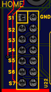 21 - Homing Pin Header Additional external sensors for the homing process can be connected to this pin header. Simply connect the pin of the respective servo motor to ground. This pin is also directly connected to the DB25 connector.