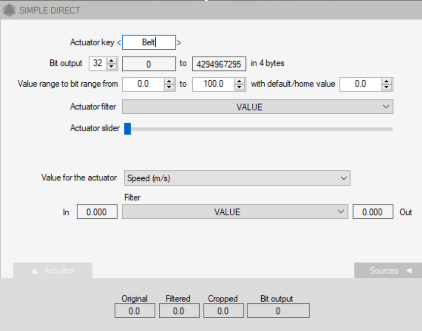 Flypt Mover output string for Direct Mode using belt on actuator 7