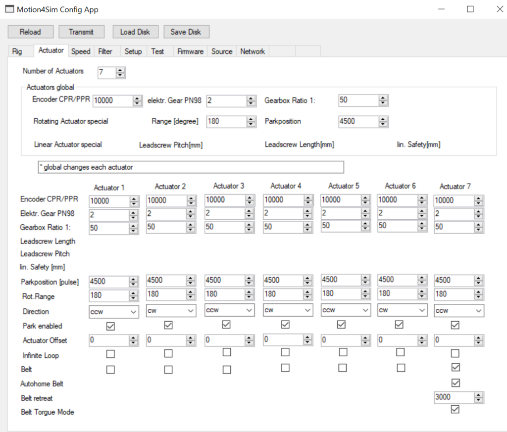 Also, enable the checkbox for the Auto Home Belt function and, of course, the Belt Torgue Mode option below. The value in the Belt-Retreat-box gives you the basic tension of the belt so that it always fits snugly. Values from 0 to 4095 can be entered. 4095 corresponds to the highest belt tension, and 0 corresponds to no belt tension. The location value that is entered is usually 3000. This is still from the other variant of operating the belt and should be set to values between 0 and 100 or 200.